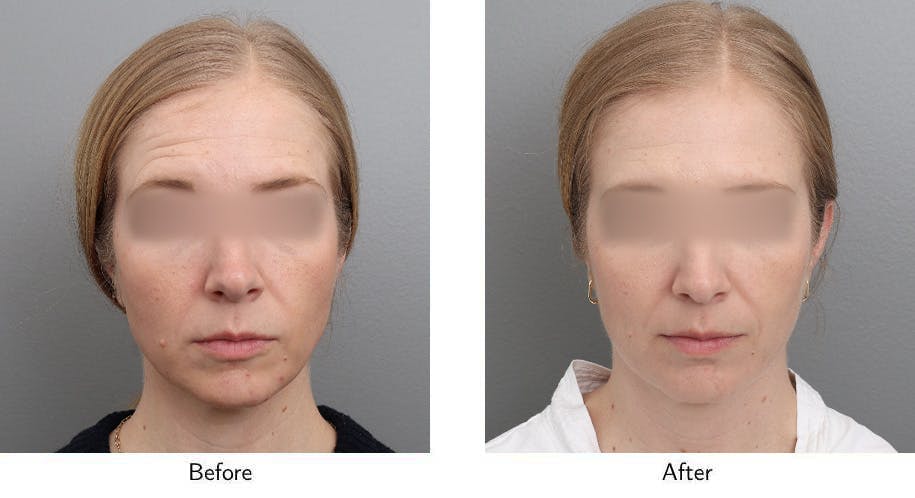 The treatment involves a non-surgical injection that temporarily reduces prominent forehead creases, brow furrows, and crow’s feet. Botulinum toxin achieves these effects by temporarily diminishing the function of the facial muscles specifically responsible for the repeated creasing of the overlying skin, and thus the creation of facial wrinkles and creases.